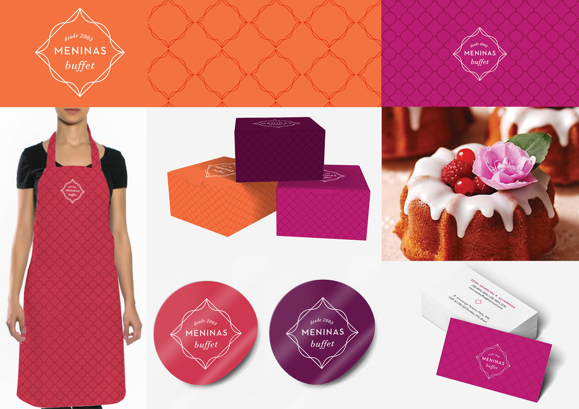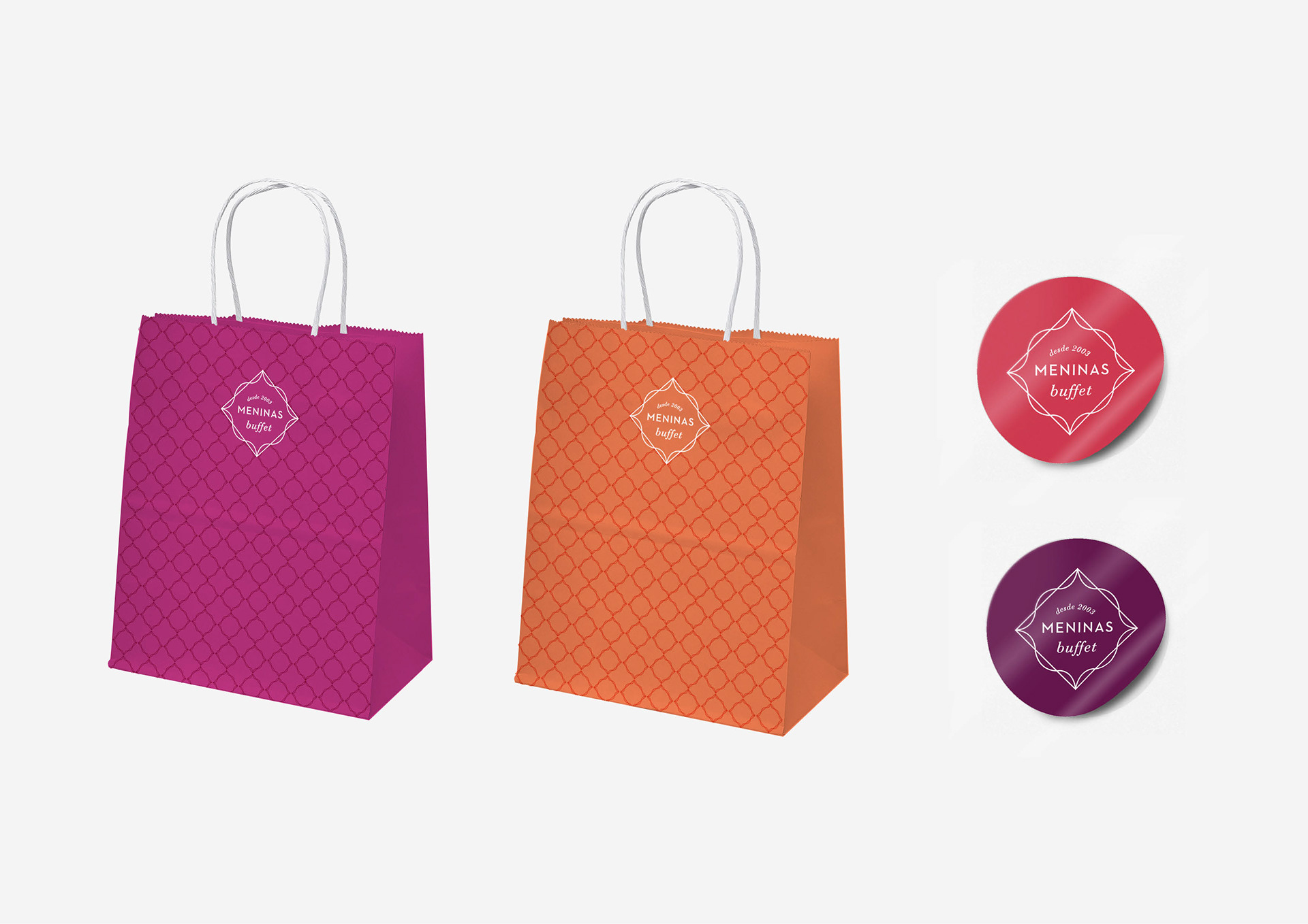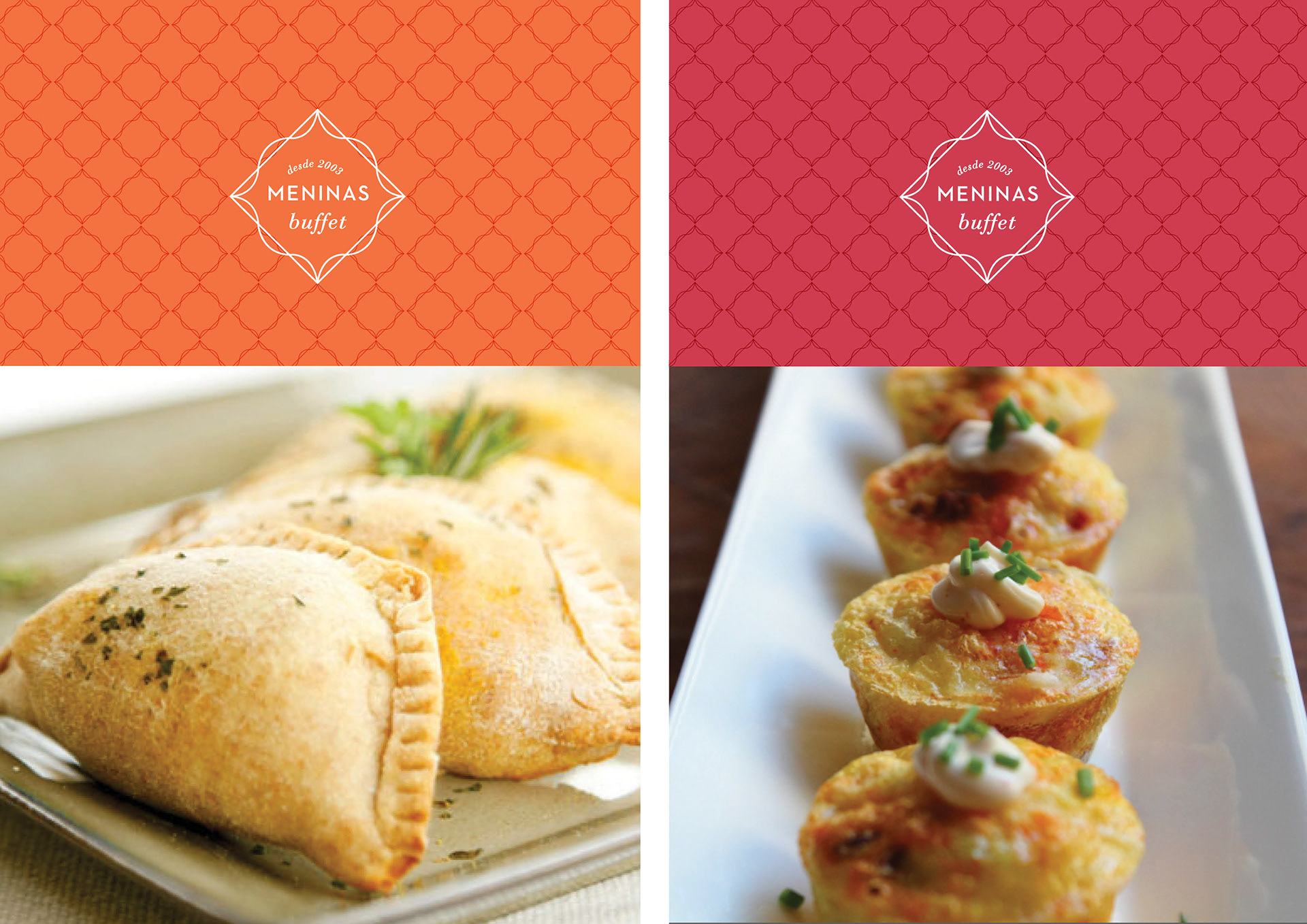 Visual identity for Meninas Buffet. Food brand and catering service.